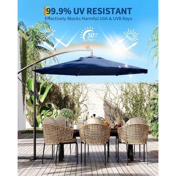 10 ft. 360 Degree Rotation Cantilever Offset Patio Umbrella with Crank Lift & Cross Base in Navy Blue