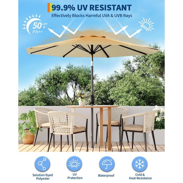 10 ft. Metal Pole Round Market Tilt Patio Umbrella with UV-Resistant Fabric in Beige