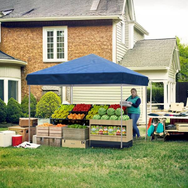 10 ft. x 10 ft. Instant Pop Up Canopy Tent Easy Setup Sun Shelter in Blue with Adjustable Height