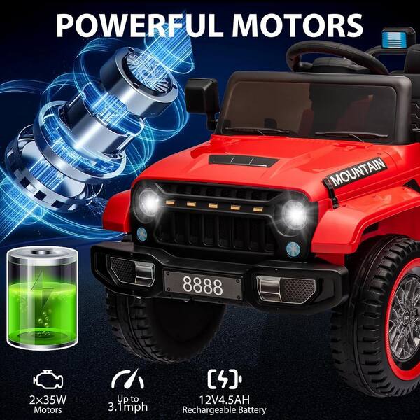 12V Kids Electric Ride on Truck Car with Remote Control, Spring Suspension, 3 Speeds, LED Lights, Red