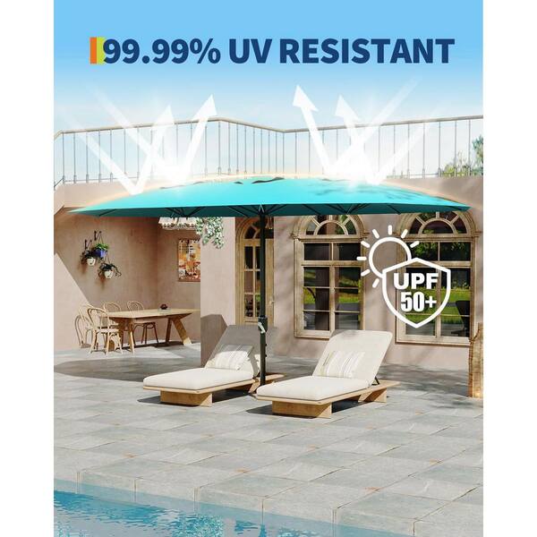 13 ft. Outdoor Double-Sided Rectangular Market Patio Umbrella with Crank Lift in Mist Blue