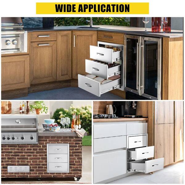 15.7 in. W x 17.7 in. D x 21.6 in. H Stainless Steel 3 Drawer Access Drawer Unit