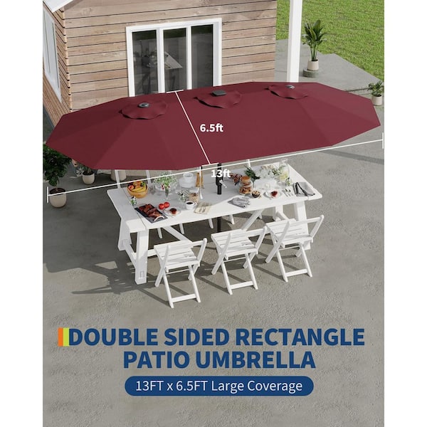 15 ft. Rectangular Outdoor Double-Sided Market Patio Umbrella with Crank Lift & Base in Claret