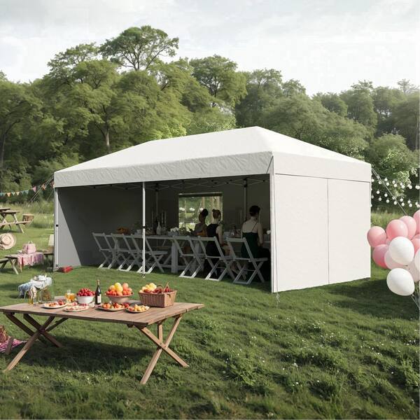 20 ft. x 10 ft. Instant Pop Up Canopy Tent Sun Shelter in White with 4 Removable Sidewalls and Adjustable Height