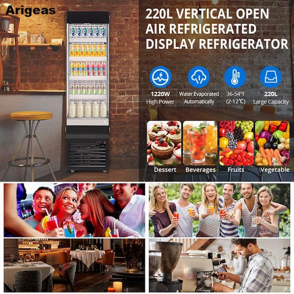 20 in. 7.8 cu. ft. Commercial Open Air Merchandiser Display Refrigerator in Black with Wheels