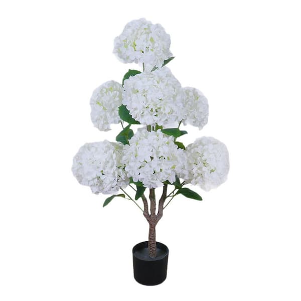 3 ft. Artificial Hydrangea Tree In Pot, Faux Tree With Flowers And Leaves, 36 in. Faux Hydrangea Flower