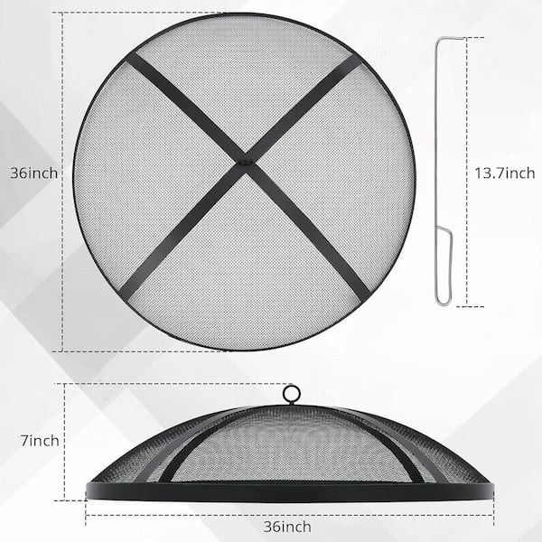 36 in. Outdoor Round Carbon Steel Mesh Fire Pit Spark Screen Cover with Poker