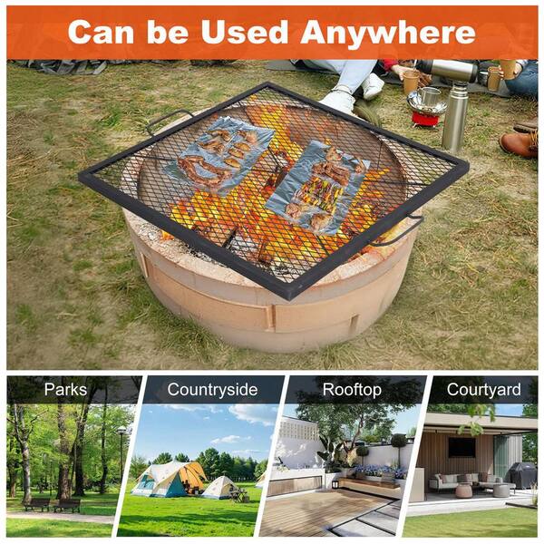 36 in. x 36 in. Square Cooking Grate for Fire Pit, Cross-Marks Campfire Grill Grate with Handle