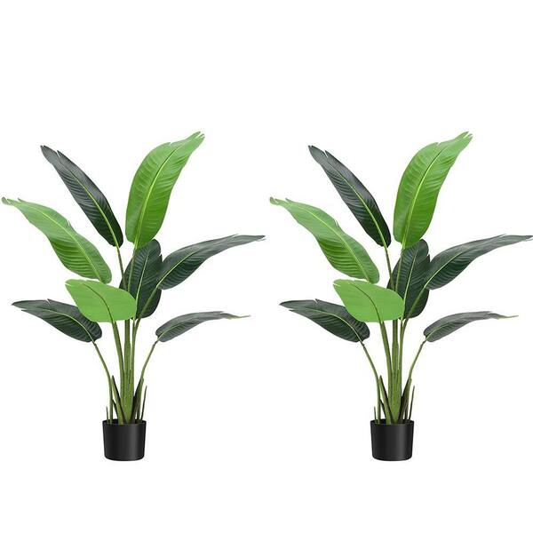 4 ft. Artificial Bird of Paradise Plant, 2-Piece Tall Tropical Palm Potted Leaf Patterns Green Tree For Home Decro