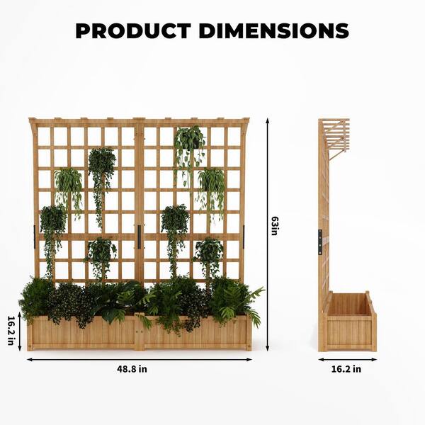 48.8 in. x 16.2 in. x 63 in. Large Unfinished Wood Raised Garden Bed with Lattice Trellis and Hanging Roof