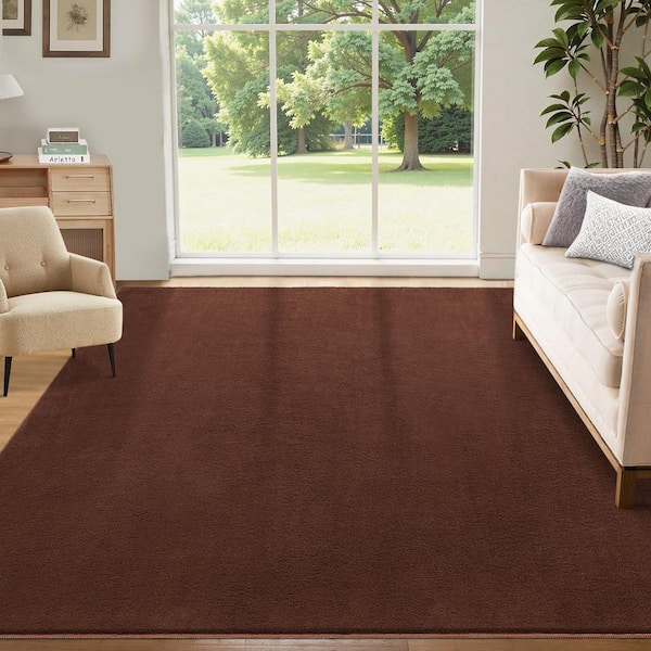 5x7 Solid Thick Shag Rug Soft Washable Indoor Carpet for Living Room Hallway Bedroom,Brown