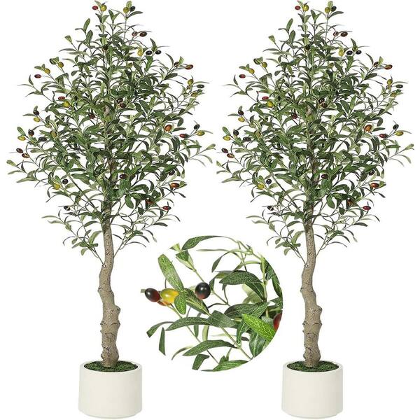 6 ft. 2-Piece Artificial Tree, Faux Olive Tree Faux Simulation Fake UV Resistant Plants in Pot