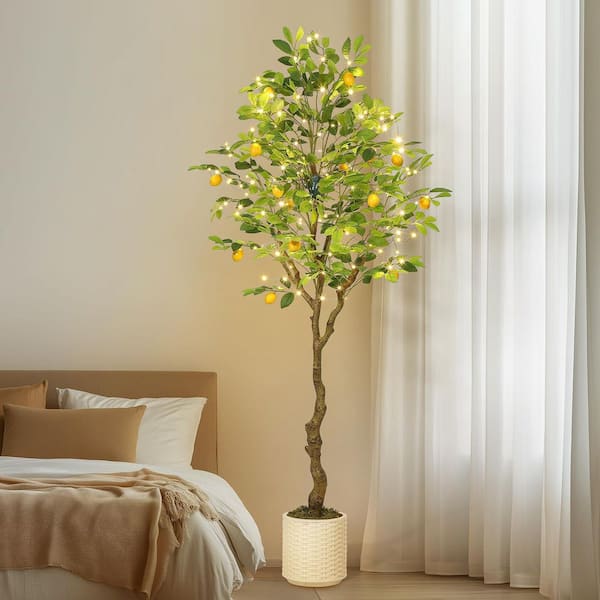 6 ft. Artificial Lemon Tree Indoor, Pre Potted Faux Lemon Tree with Realistic Fruit and Leaves with 100-Lights