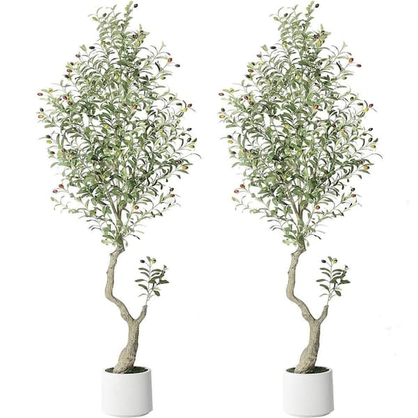 7 ft. 2-Piece Artificial Olive Trees Faux Simulation Tree Plants with Lifelike Wood Trunk and Fruits