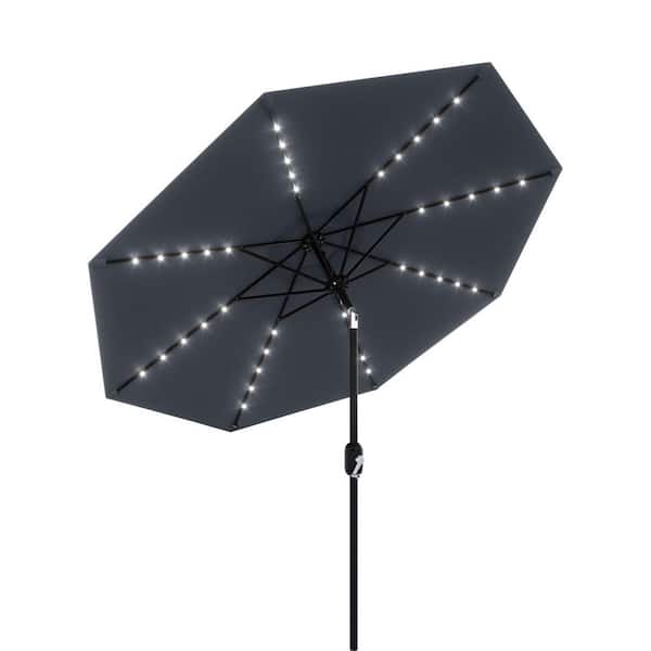 9 ft. Metal Pole Round Market Solar LED Lighted Tilt Patio Umbrella with UV-Resistant Fabric in Gray