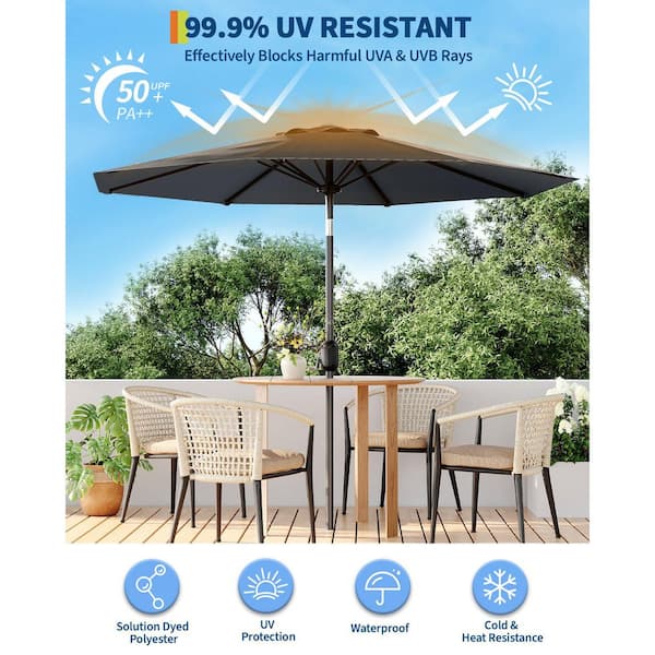 • 9 ft. Dia provides ample shade for 6-8 chairs and table