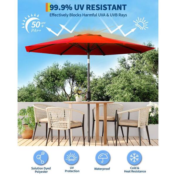 • 9 ft. Dia provides ample shade for 6-8 chairs and table