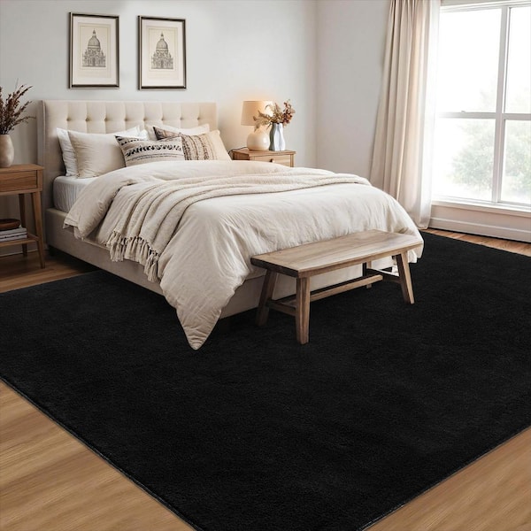 Black 5 ft. x 7 ft. Solid Thick Shag Rug Soft Washable Indoor Carpet for Living Room Hallway Bedroom Aea Rug