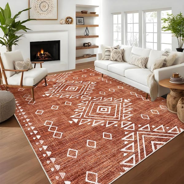 Brick Red 8x10ft Geometric Retro Corridor Strip Carpet Tribal Style Distressed Area Rug