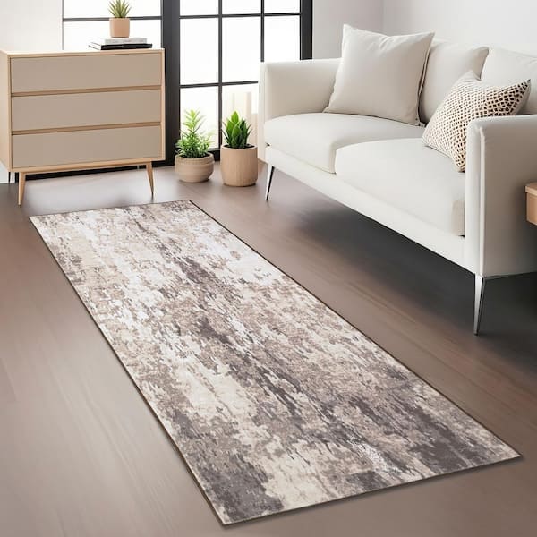 Brown 2 ft. x 6 ft. Modern Abstract Decorative Area Rug Polyester
