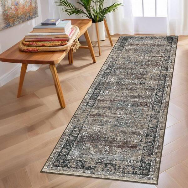 Dark Brown 2 ft. x 6 ft. Medallion Pattern Short Pile Indoor Area Rug
