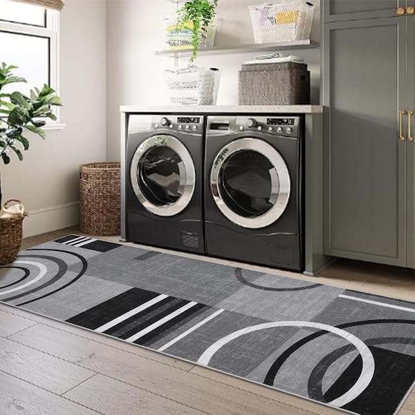 Gray 2x6ft Geometric Abstract Washable Area Rug