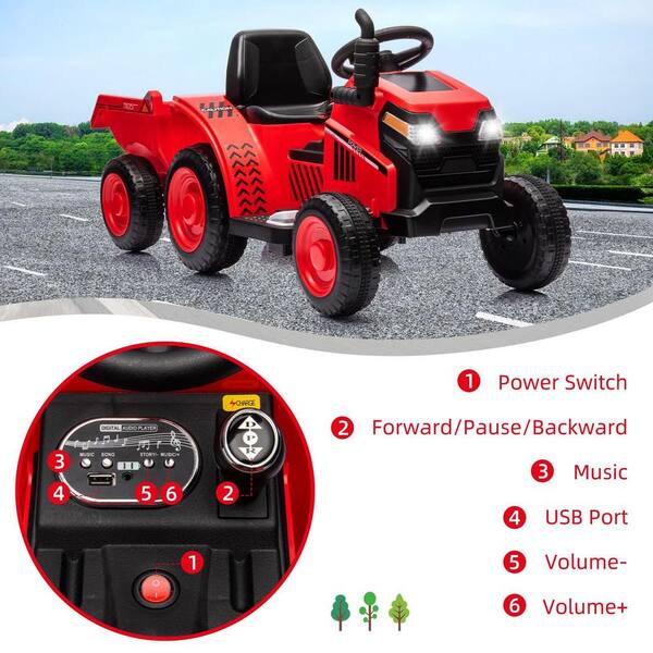 Kids Ride on Tractor with Trailer, Kids' Electric Vehicles with Wear-Resistant Wheels, Red