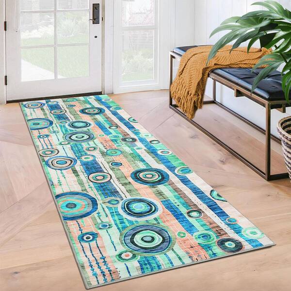 Modern Abstract Printed Rug Living Room Decorative Rug Washable Rug Anti-fouling Non-slip Blue 2X6ft