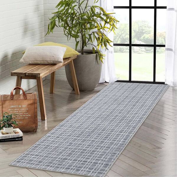 Modern Geometric Area Rug Indoor Non-slip Carpet Machine Washable Carpet Low Pile Foldable Carpet Gray, 2X6ft