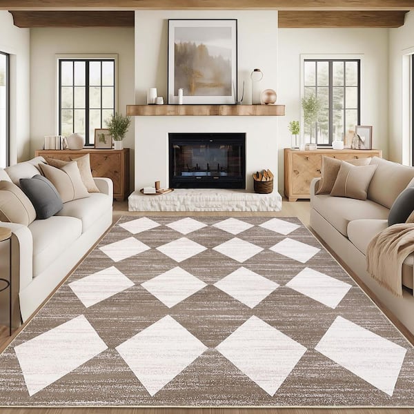 Modern Geometric Diamond Soft Non-slip Thin Washable Foldable Bedroom Laundry Home Decor Brown 10 ft. x 13 ft. Area Rug