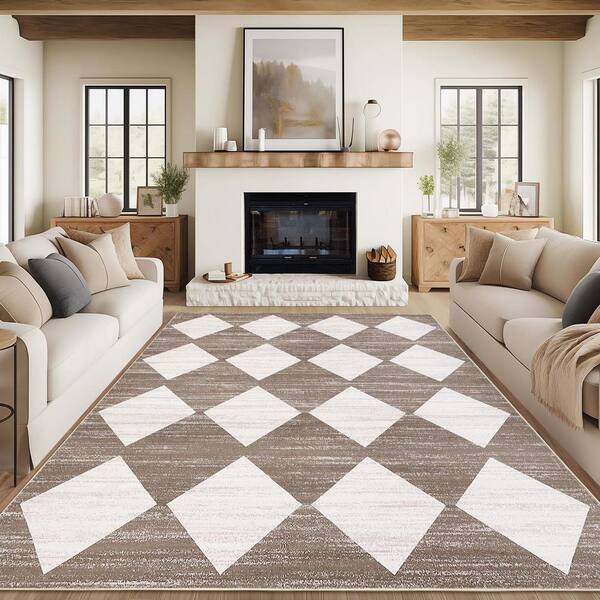 Modern Geometric Diamond Soft Non-slip Thin Washable Foldable Bedroom Laundry Home Decor Brown 9 ft. x 12 ft. Area Rug