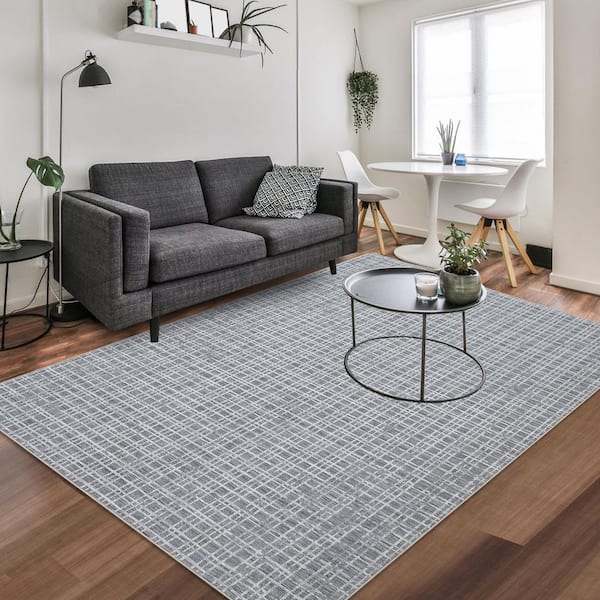 Modern Geometric Indoor Non-Slip Carpet Machine Washable Carpet Low Pile Foldable Carpet Gray, 6 x 9 ft. Area Rug