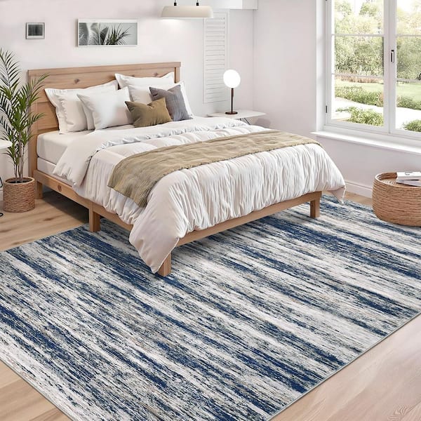 Modern Soft Thin Rug Abstract Printed Carpet Machine for Bedroom Office Dining Room Blue 9 ft. x 12 ft. Area Rug