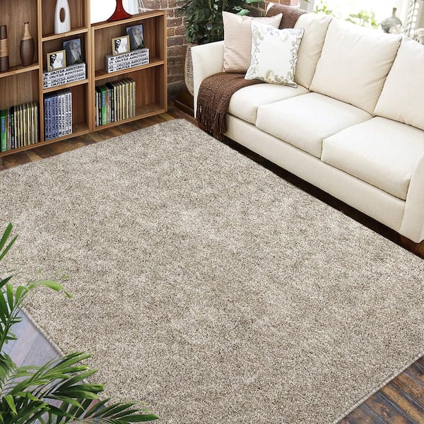 Natural 9 ft. x 12 ft. Shag Solid Area Rug