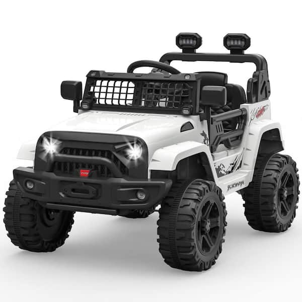 Ride on Truck Car 12-Volt Kids Electric Vehicles with Remote Control Spring Suspension, LED Lights, Bluetooth, White