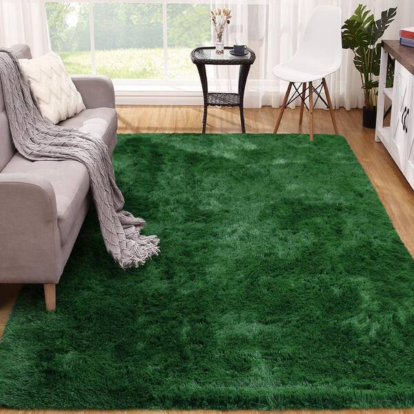 Tie Dye 6' x 9' Fluffy Rug Non-Slip Faux Fur Solid Green