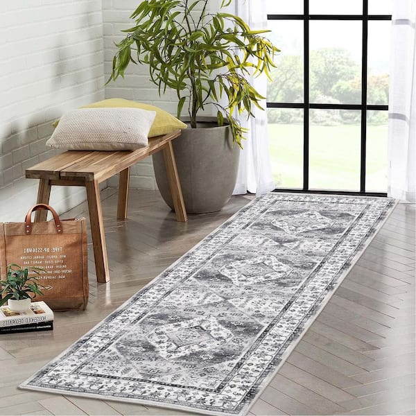 Vintage Carpet Gray 2X6ft Machine Washable Printed Deferred Short Pile Non-slip Rug Soft Foldable Indoor Rug