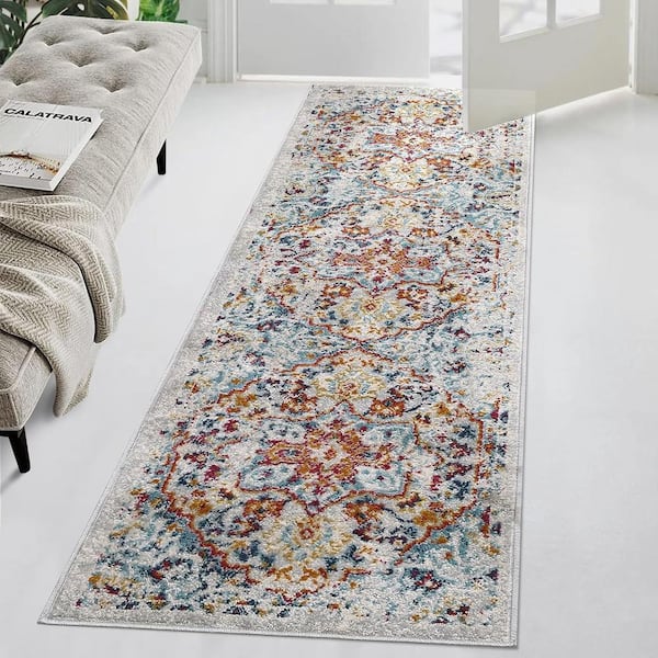 Vintage Low Pile Non-Shedding Distressed Mat Multi-Colored 2 ft. 3 in. x 7 ft. 3 in. Boho Medallion Area Rugs