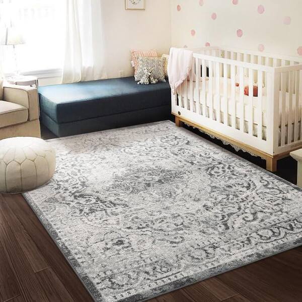 Vintage Medallion in Gray 8 ft. x 10 ft. 2 in. Indoor Area Rug with Non-Slip Back