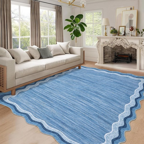 Washable Carpet Blue 9 ft. x 12 ft. Soft Non-Slip Thin Area Rug Irregular Solid Color Decorative Carpet