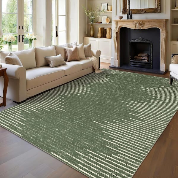 Washable Dark Green 5 ft. x 7 ft. Modern Striped Printed Rug Low Pile Soft Thin Carpet Stain Resistant Non-Slip Area Rug