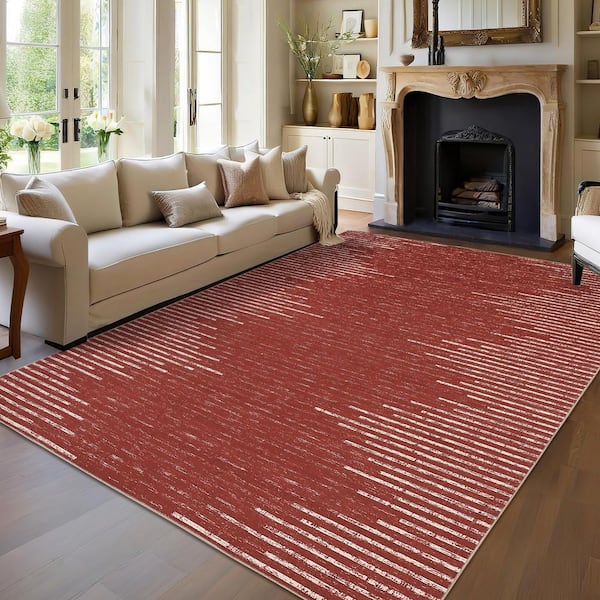Washable Red 5 ft. x 7 ft. Modern Striped Printed Rug Low Pile Soft Thin Carpet Stain Resistant Non-Slip, Area Rug