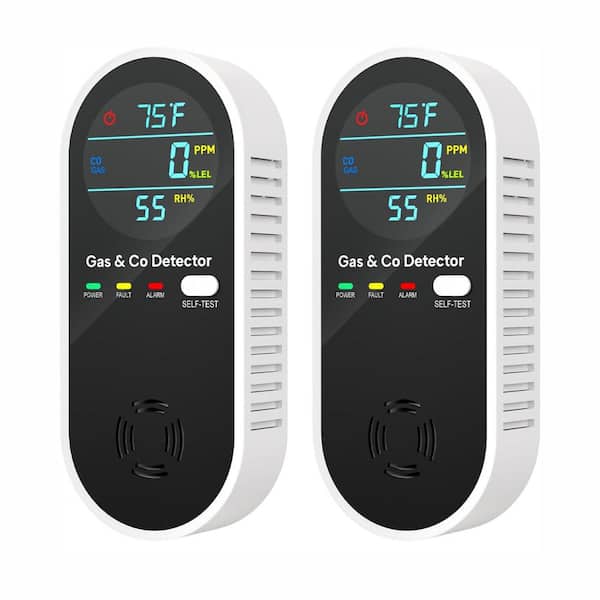 Gas Leak and Carbon Monoxide Detector System with Temperature Humidity Sensor LCD Display for Home RV 2 Pack
