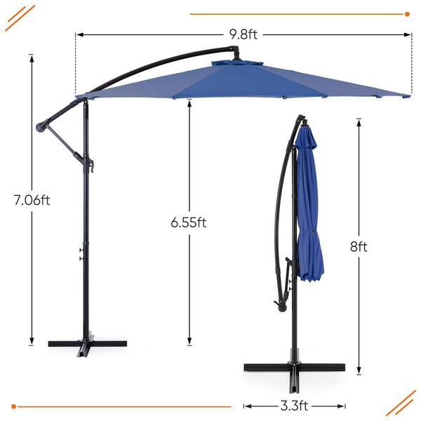 9.8 ft. Aluminum Market Crank Tilt Umbrella Patio Umbrella in Blue