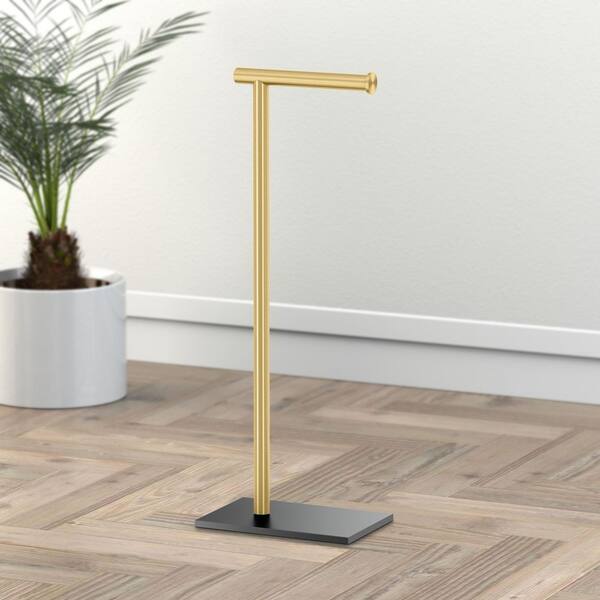 Latitude II Square Freestanding Toilet Paper Holder in Matte Black/Brushed Brass