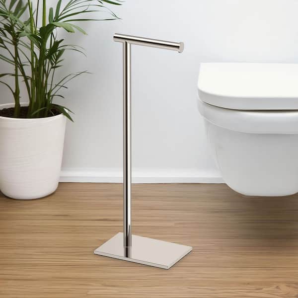 Latitude II Square Freestanding Toilet Paper Holder in Polished Nickel