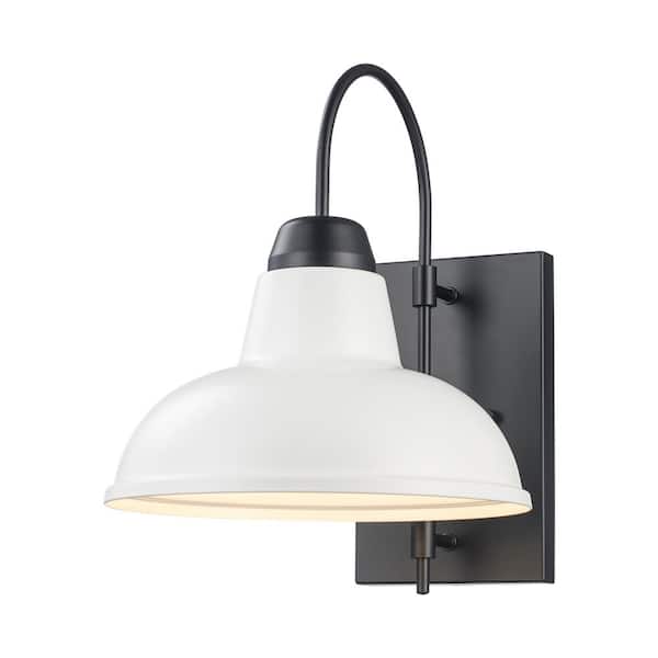 Gaviota 14.75 in. 1-Light Black and White Farmhouse Outdoor Barn Light Wall Sconce with Metal Shade