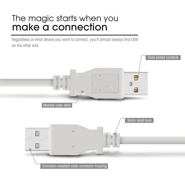 15 ft. Hi-Speed USB 2.0 A Type A Male to Type A Male Cable with Lifetime Warranty (5-Pack)