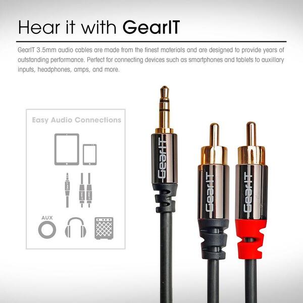 35 ft. 3.5 mm to 2 RCA Stereo Audio Cable with Step Down Design - Black (2-Pack)