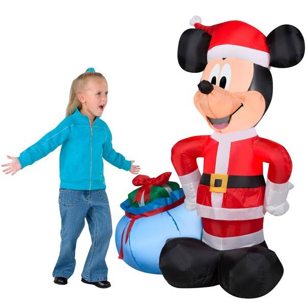 42 in. H Inflatable Santa Mickey with Blue Gift Sack